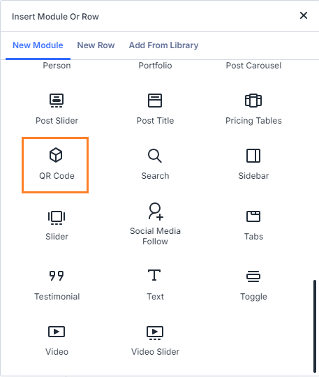 In the Visual Builder, add a QR Code module to your page layout where you want the code to appear.
