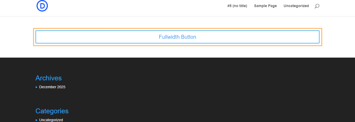 Once you’ve enabled "Force Fullwidth," click the main save or publish button in the Divi Builder to update your page. Next, exit the builder and view your page on the front end to see the new full-width button in action.